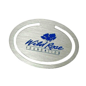 Oval - Steel .018, bookmark featuring a slit to hold pages. Colors available: Goldtone. We will custom imprint these Oval Shaped Bookmarks with your logo, text, or custom artwork!Questions? Call us at 1-800-958-4332!
